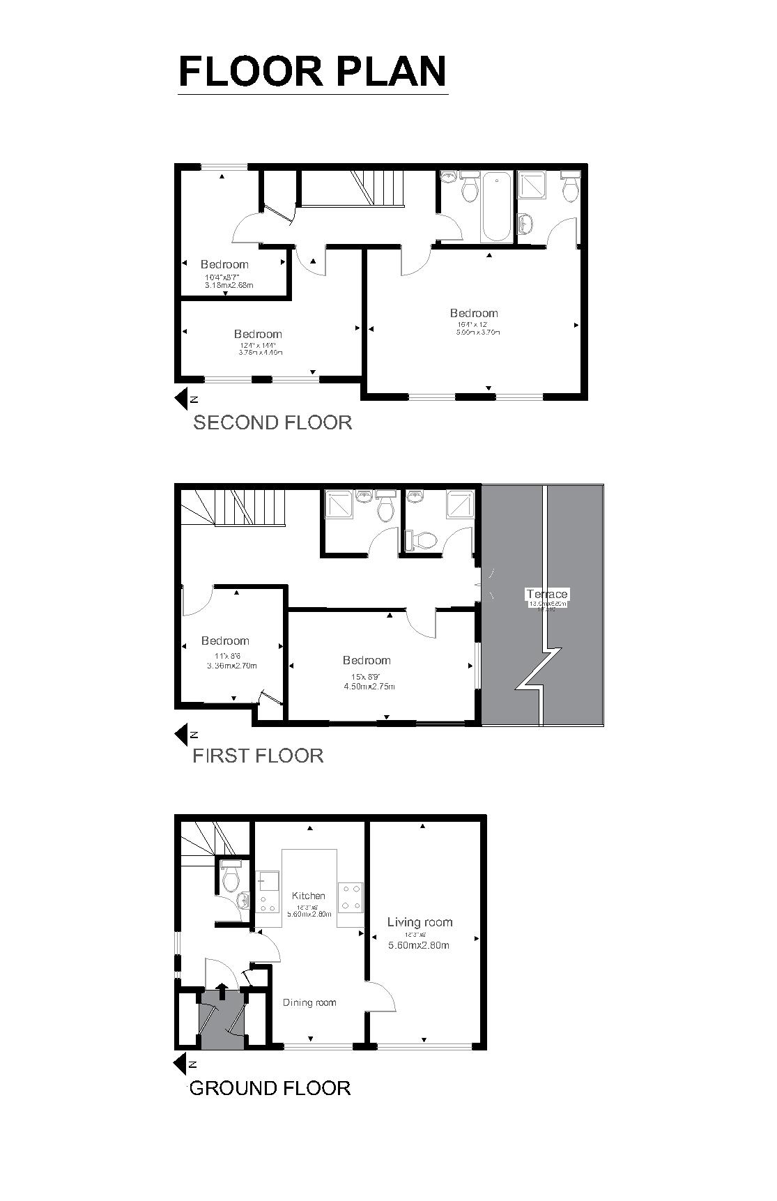 5 bedrooms, 4.5 bathrooms terrace house split over 3 levels
